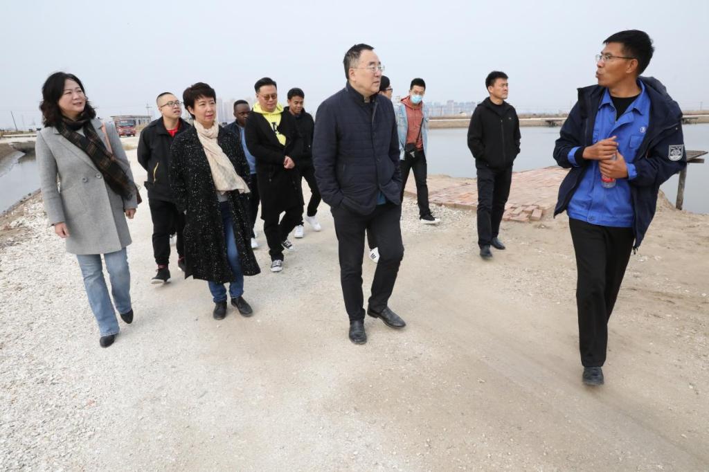 随后,采风团来到了盐场,领略了浩如烟海的万顷蓄水池,目睹了盐山卤海的宏伟壮观。采风团成员、来自肯尼亚的职工孔爱凯看到盐田格外兴奋,这是他第一次看到盐山。他很荣幸能够参与到此次系列采风活动中,走出校园,了解更多中国文化,并感受这些中国文化的魅力。他表示,这不仅更好地帮助他认识了中国,同时也对其相声创作提供了大量的素材。采风团成员杨皤认为,不仅是外国职工朋友,自己也是第一次走进盐田,第一次深入了解盐文化,这次参观是一种全新的体验,也给自己的创作带来灵感。