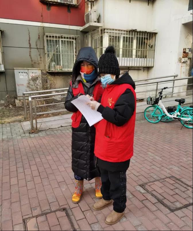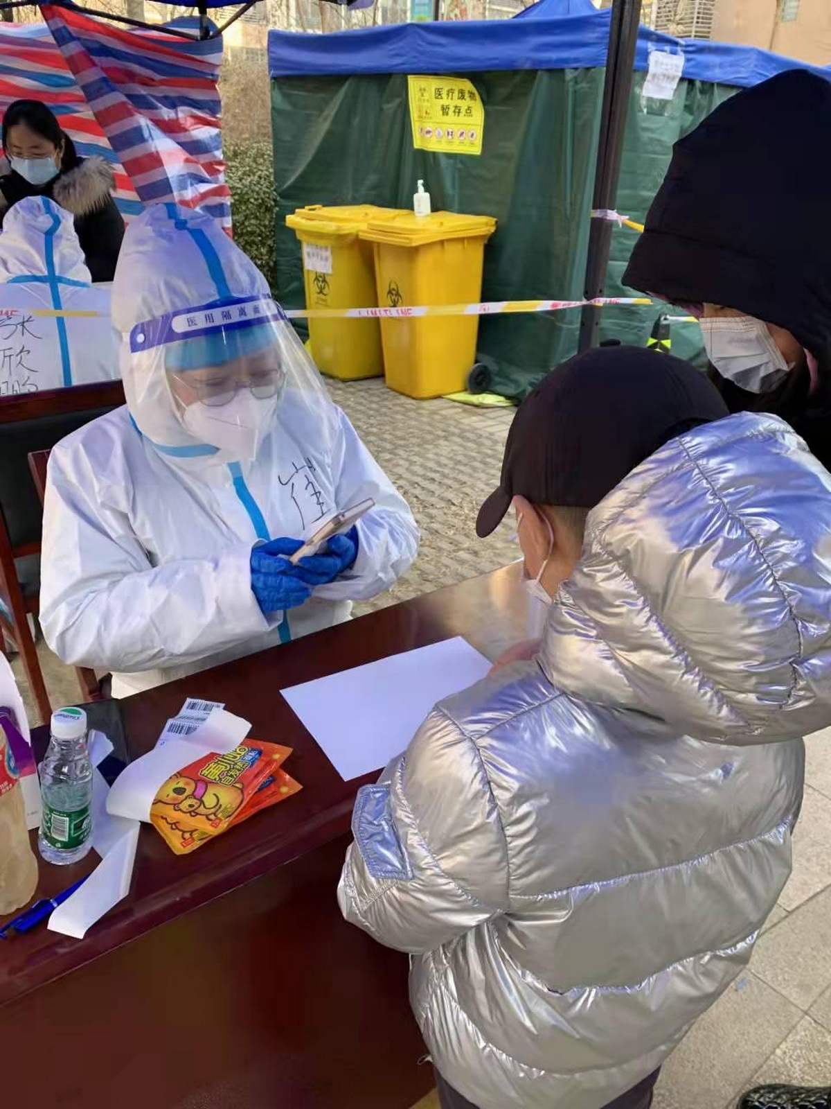 表演系教师崔丽,1月11日就到西青区王稳庄镇参与第一批防疫服务工作。14日又按照社区安排,到西青区李七庄街天房美域居委会报到。几轮筛查已承担过布置场地、敲门扫楼、录入信息等任务。崔丽录入信息是单人作战,要确保信息录入无误,就要格外专心仔细,即使冻得涕泗横流,嘴唇干裂,也没有喊一个苦字。几轮筛查下来,崔丽已经储备了相当丰富的经验,请没有身份证的居民配合念身份证号,尝试扫描电子身份证等方法,都是为了加快录入速度,提升工作效率。