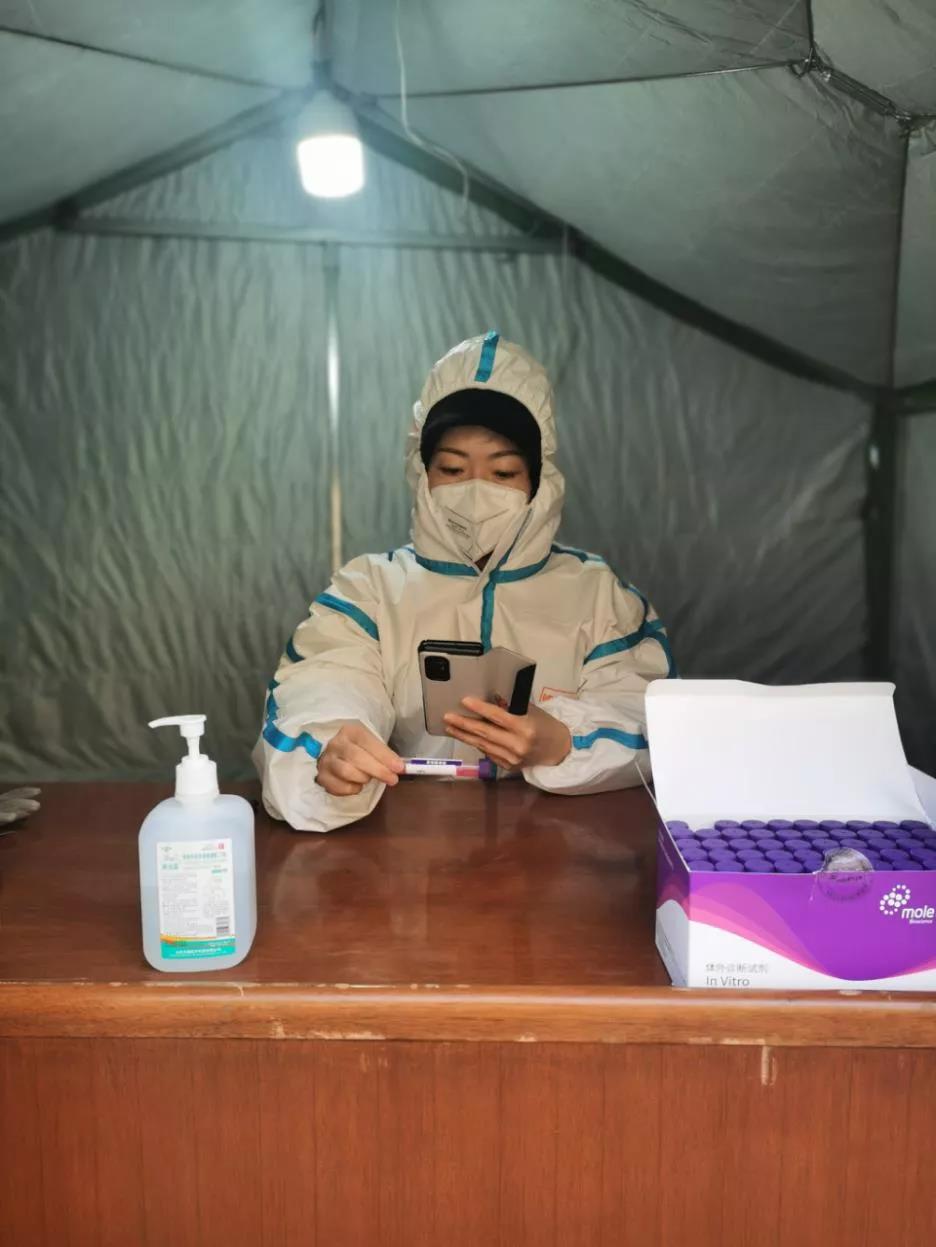作为到社区参加疫情防控工作的志愿者,17日清晨,声乐系师岩老师便穿上防护服与医护工作者一起投入工作。她的主要任务是在中北镇社区扫码录入核对身份证信息,工作虽不难,但要求高,不能有一点点错误,她仔细核查了近1500余名居民的姓名与号码,保证零失误。因为是重点区域,接下来几天中北镇社区的大筛任务依然十分繁忙,师岩老师的志愿服务将继续进行,她说:“当我穿上了隔离服,才更加体会到白衣战士的不易,志愿服务虽忙碌、琐碎,但作为一名师大人,奉献爱心,‘疫’不容辞!”