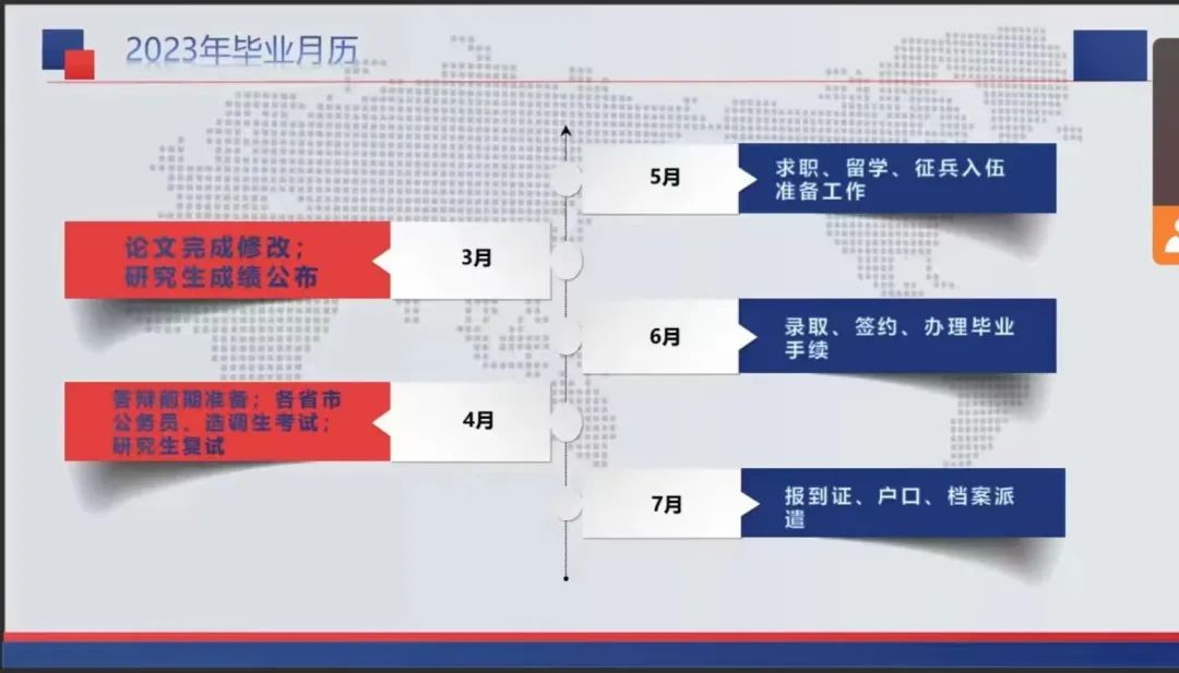 学院学工办主任李静就毕业流程及就业创业相关政策进行详细说明。李静老师首先进行毕业月历解读,以直观生动的方式,按时间进度使毕业生们对于近期校园生活规划更加心中有数。随后基于案例分享和经验解读,详尽阐释了毕业前同学们可能会遇到的困惑和问题,结合同学们目前的择业就业心理,为同学们提供切实可行的方案建议。从就业方向选择到各类招考的报名备考,再到温馨的“离校小贴士”,李静老师多角度的阐释关于就业技巧、校园事务、户籍迁移、档案派遣、就业协议签订等方面内容,最后针对同学们普遍关注的共性问题一一梳理回应。