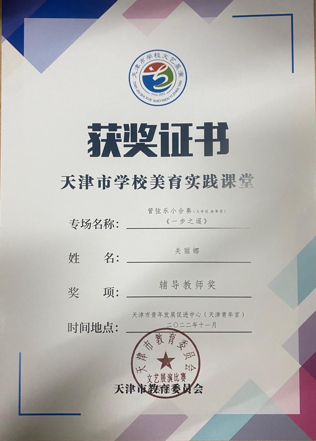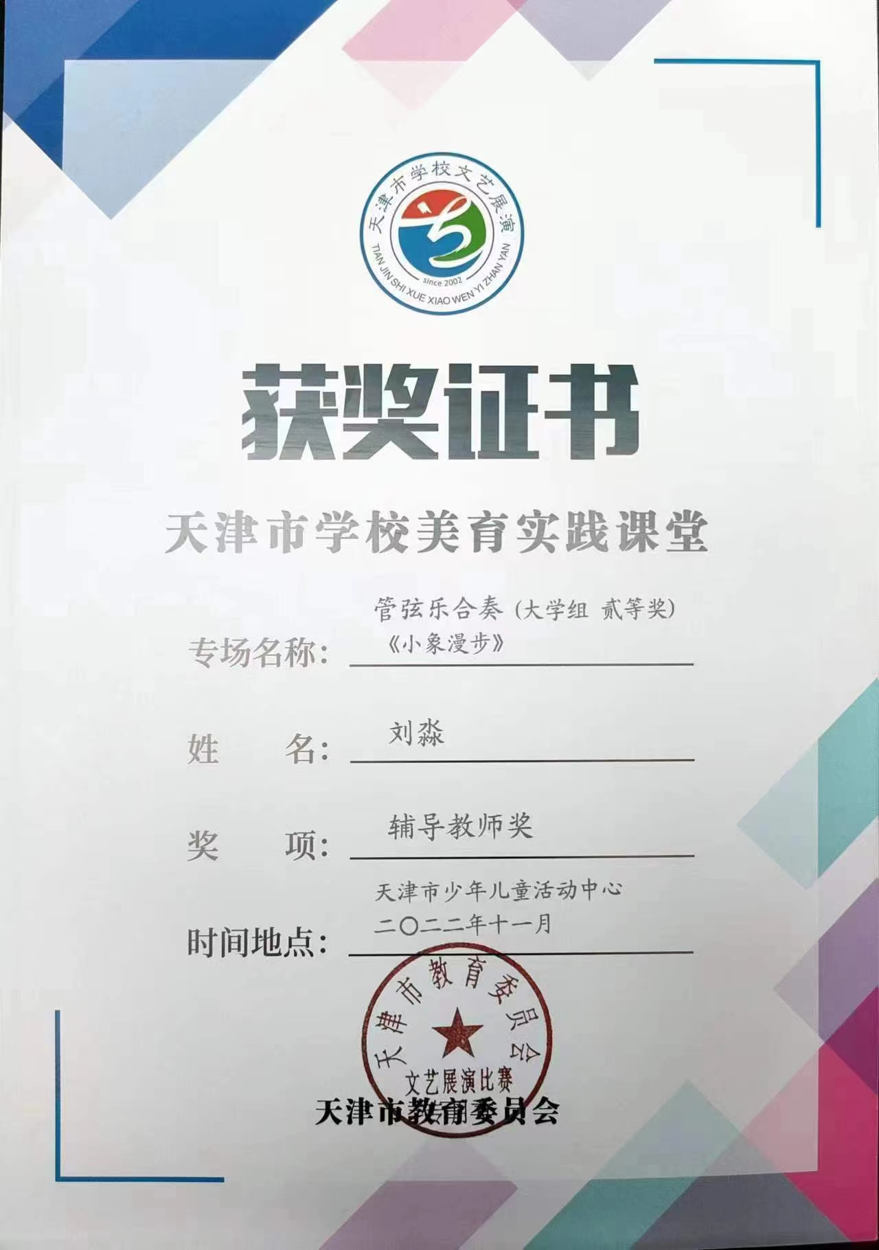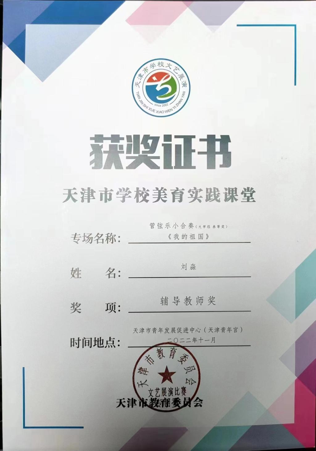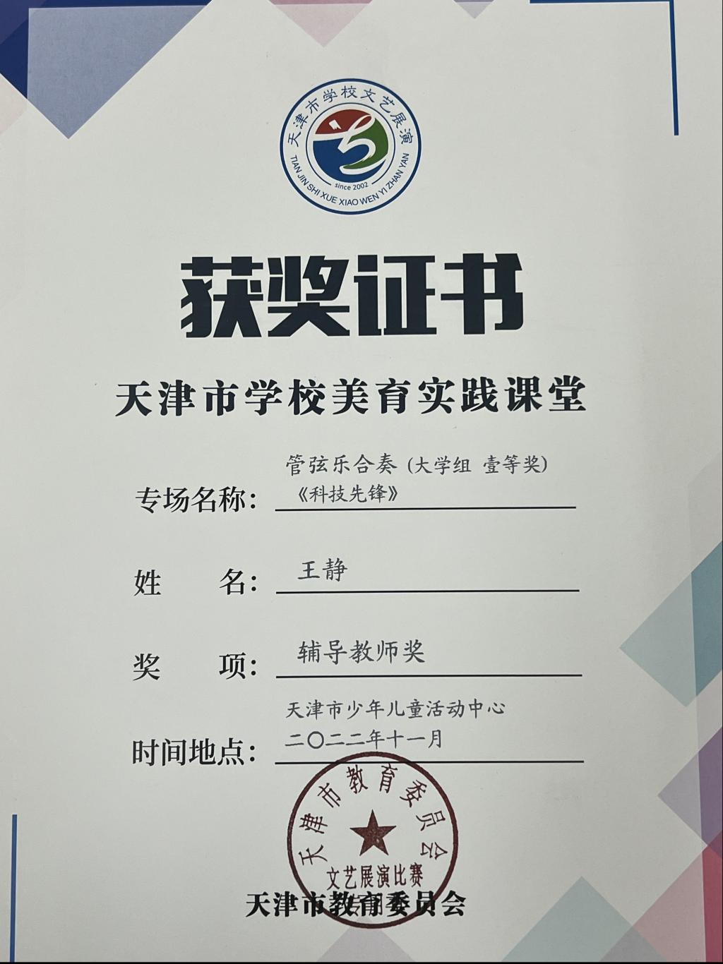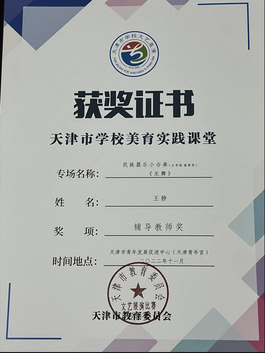 比赛中,同学们认真对待、积极准备,克服疫情时期的各种困难,抓紧一切在公司的时间,用最短的时间排练作品,尽情展现青春的风采,更是用艺术表演彰显校园文化底蕴,将美育实践的成果带到更广阔舞台。PA视讯集团官网器乐系教师王静、刘淼、张坤、关丽娜获得辅导教师奖。