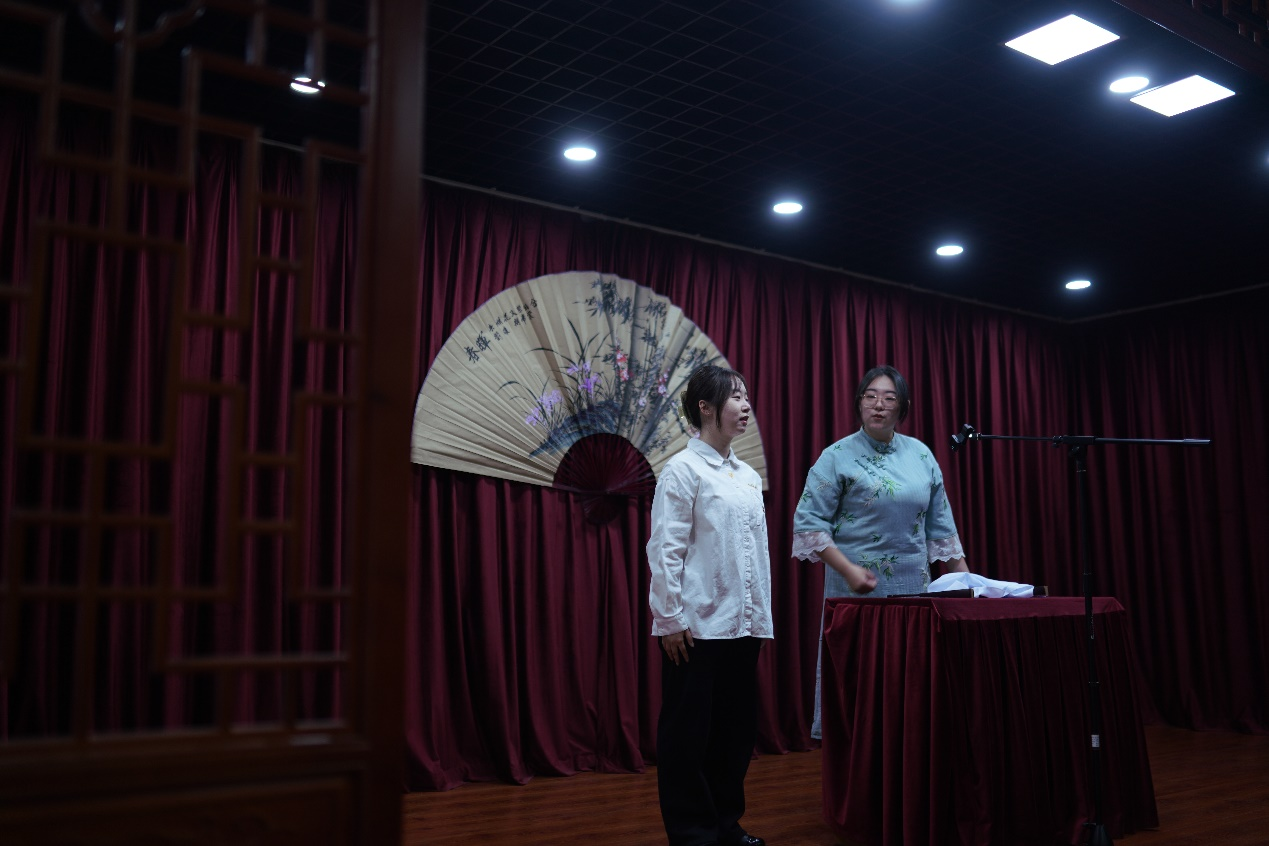 历史文化公司的宋雨珂与地理与环境科学公司的高日和带来了相声《聘文书》。“文盲”为向“小哈罗”表白,豪掷千金聘请老员工写情书,无奈文化太低、洋相百出,引得满屋哄堂大笑。