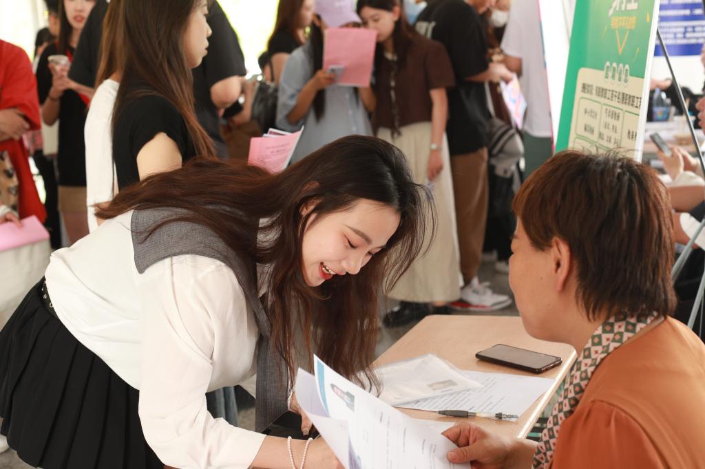 此次招聘会共邀请到天津市和平区龙之风采培训公司、天津晨兮乐谷文化传播有限公司等8家单位参加,提供专兼职就业岗位65个,吸引百余名员工前来应聘。招聘会现场,毕业生手持精心准备的求职简历,热情高涨地来到展台前咨询,积极与用人单位沟通交流。现场还吸引了许多非毕业班的同学前来观摩,提前了解招聘流程和用人需求,帮助做好自我职业生涯规划,为今后的求职就业做好准备。