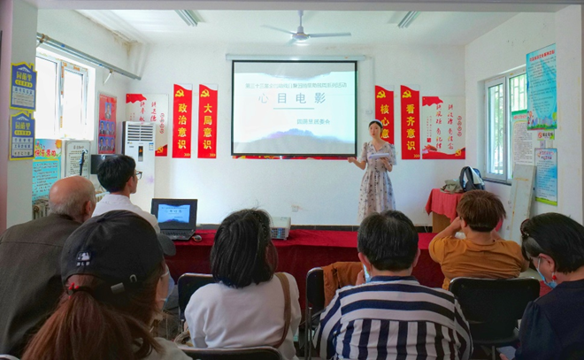 戏剧影视文学本科生党支部员工代表辛晨语分享参加活动的感受,她说作为一名主讲人,向居民们分享了《满江红》这部电影,深深感动于历史洪流下的无名草根英雄位卑不敢忘忧国的坚定信念,在参与活动的过程中倍受鼓舞。作为青年党员,将时刻牢记入党初心,谨记自身使命,竭尽自身所能传承优秀红色基因,践行入党初心使命。