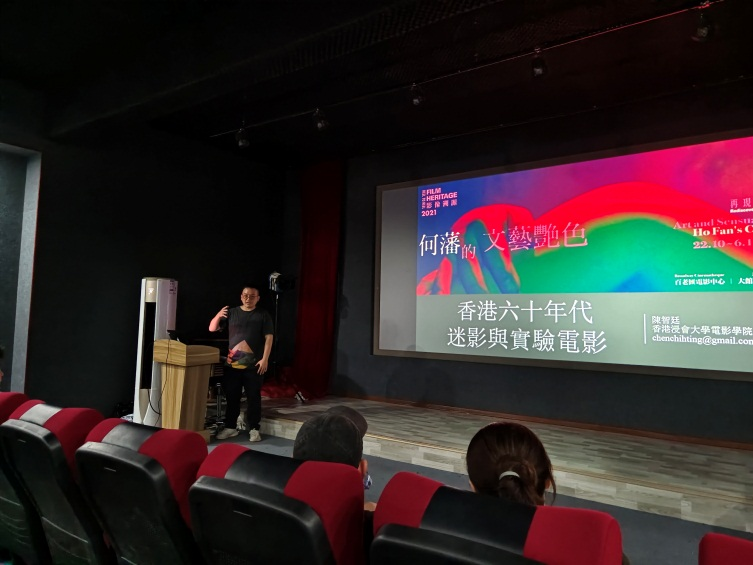 陈智廷介绍了香港电影资料馆对香港独立短片与影像作品的搜集与研究工作,引出介绍何藩现存的实验电影,8毫米无色彩作品《大都市—小人物》(何藩编导,1963年摄制,1966年首映),并对何藩实验电影的美学色彩进行了深入分析。陈智廷讲到“新香港电影”的发展脉络,以及其中有关实验电影、业余电影及地下电影的迷影团体,及其中电影创作风格对法国新浪潮与新美国电影的沿袭。随后,他进一步指出面对当前香港电影的文本佚失困境的方式,也就是将现存与佚失的六十年代香港实验电影文本视为当时刊物、放映场所、电影会等媒体环境与包括放映、拍摄、研讨、评论在内的影迷文化的一部分进行放映与传播。