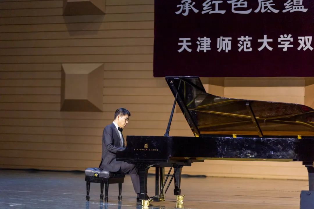 正值青春的我们,生在阳光下,长在春风里,生逢其时,当更加热爱。董青饱含深情地朗诵《青春中国》,配合刘芸精湛的钢琴演奏,谱写出新时代师大青年奋进拼搏的精神风貌,淋漓尽致地展现了吾辈青年以青春之我共筑青春之中国的热血风姿。《又见梨花开》以一段柔美的钢琴伴奏开场,卫晓琼用温婉的声音与丰富的情感诠释着歌中纯洁的爱情,述说着一对有情之人期盼相见的心语。师岩以一曲《黄河大合唱》中的片段《黄河怨》热情歌颂中华民族源远流长的历史文化和中国人民坚强不屈的斗争精神。