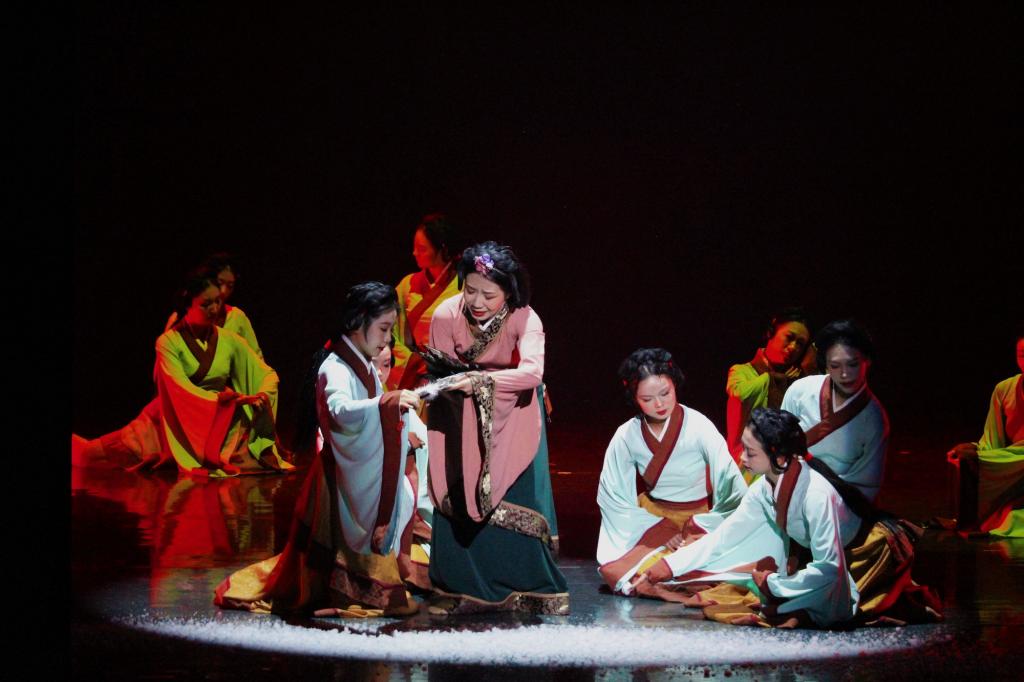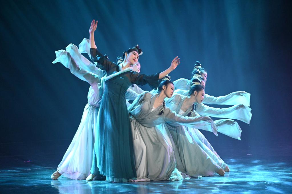 舞蹈《鸿鹄高飞》中,舞者们吟诵苏武的诗句,用刚柔并济的舞姿呈现中国古典舞的力与美,抒发古往今来青年学子的远大理想与鸿鹄之志。“李白一斗诗百篇,长安市上酒家眠”,舞蹈《饮中八仙》将观众带回那个充满诗情画意的盛唐时代,呈现出一幅生动立体的文人士大夫志趣相投、饮酒论诗的群像图。