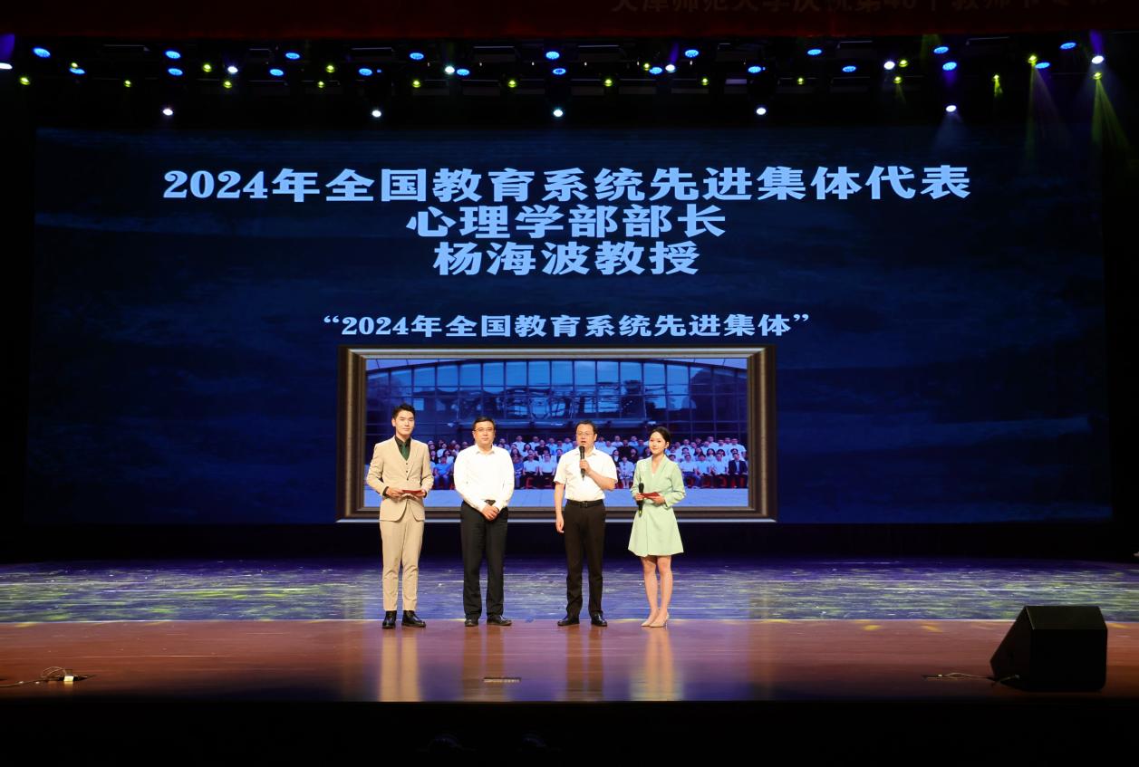 晚会期间,有幸邀请到荣获全国教育系统先进集体的代表,公司心理学部部长杨海波教授,以及荣获全国模范教师称号的教育学部李洪修教授来到现场与师生交流,就学习贯彻党的二十届三中全会精神,学习领会习近平总书记在全国教育大会上的重要讲话精神和全国教育大会精神,贯彻落实党中央关于教育强国建设的决策部署谈自身体会,结合公司党委工作要求和自身工作分享今后努力方向。晚会在齐唱校歌中结束。