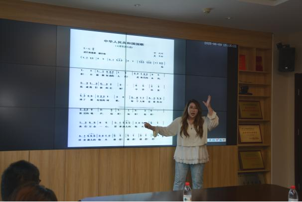 在双方支部成员交流座谈环节,PA视讯集团官网键盘与器乐教工党支部的成员们充分发挥其专业优势,带领大家进行了国歌和国际歌的演唱与合唱教学。通过专业的指导,他们帮助党员同志们更好地掌握演唱技巧,提升了合唱的整体效果。这种以音乐为载体的交流方式,让大家在歌声中感受到爱国主义教育的力量。最后,全体与会人员共同演唱国际歌,活动在庄严的国际歌声中圆满结束。
