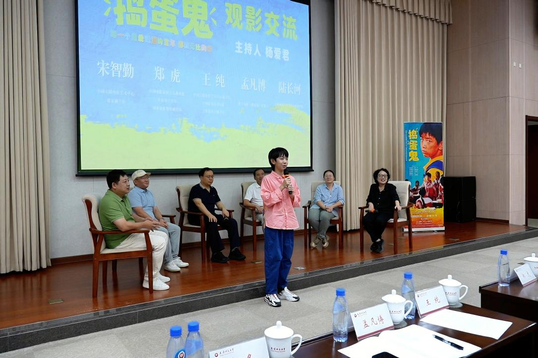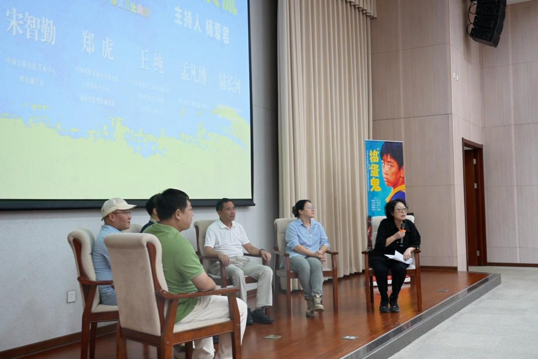 第一场观影交流会,由杨爱君教授主持,五位发言专家分别是宋智勤、郑虎、王纯、孟凡博、陆长河。与会专家围绕电影《捣蛋鬼》的创作背景、叙事结构与艺术表现进行了深入探讨。多位专家肯定了影片在儿童题材与支教主题结合上的创新尝试,认为该片具备较高的完成度。同时,专家们也提出了改进建议,包括强化人物动机逻辑、优化光影与剪辑节奏,在审美表达上更注重时代感与现实主义的平衡等。